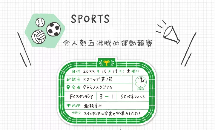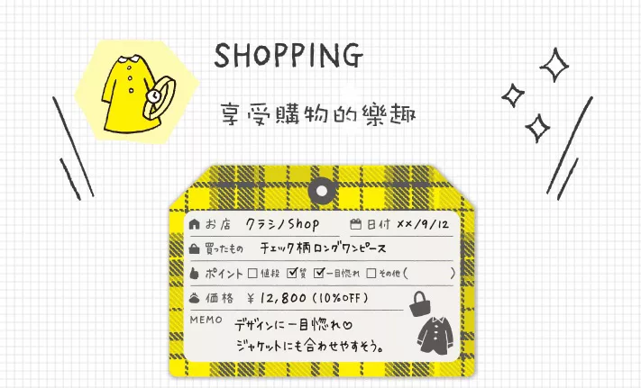 其他例如購物貼紙外型為衣服吊牌,運動貼紙則為運動場等,配上日式雜貨風的小插圖,作為手帳的裝飾也很理想。