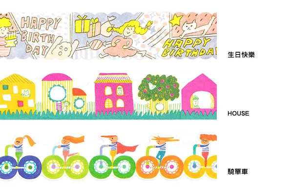 AIEUO的紙膠帶非常別緻,都是以軋型方式製作,圖案充滿童趣、生動活潑。