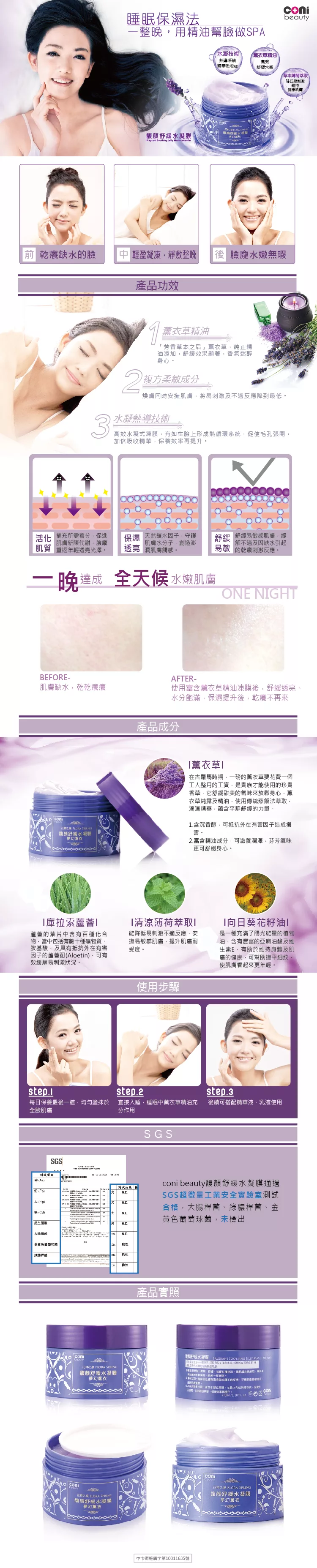 coni beauty馥顏舒緩水凝膜詳細介紹如下~你可以參考看看唷